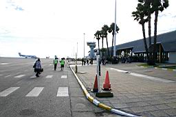 Afrika Rundreise - Reisebericht Zimbabwe - Zambia - Botswana - NamibiaEinleitung Herzlich willkommen zu meinem Reisebericht. Diesmal führte mich mein Jahresurlaub zum 2. mal ins südliche Afrika. Die Rundreise mit dem Auto began und endete in Johannesburg - Südafrika. Ich habe den Reisebericht in 6 Etappen nach Ländern geteilt. Zuerst besichtigen wir den Krüger Nationalpark im äußersten Osten Südafrikas. Danach gehts im 2. Teil durch das abenteuerliche Zimbabwe nach Masvingo und dann bis zum Lake Kariba. Die Besichtung der Victoria Falls und ein Abstecher nach Zambia zum Rafting auf dem Sambesi bildet den 3 Teil. Anschließend durchquerten wir das staubige und wohlhabende Botswana mit einer beinahe Besichtigung des Okavango Deltas. Im 5. Teil fuhren Tomomi und ich durch das immer wieder beeindruckende Namibia, wo wir den Etoscha Nationalpark sowie den höchten Berg des Landes - den Brandberg erkundeten. Die letzte lange Strecke von Swakopsmund (Namibia) nach Johannesburg bildet den Abschluss des Reiseberichts. Am 21. März 2005 war es soweit, wir konnten dem miesen Wetter in Deutschland den Rücken kehren. Knapp 4 Stunden Zugfahrt von Leipzig nach Frankfurt Airport und nach 2 Stunden Warterei am Flughafen ging um 22:30 der Flug nach Windhook (Namibia). Die diesmal ausnahmsweise bei LTUR gebuchten Flüge kosteten 562 Euro pro Person (+45Euro Rail&Fly). Der Flug mit Air Namibia war Holzklassen mäßig und etwas müde aber gutgelaunt stiegen wir um 10:00 Uhr Ortszeit in Windhoek um. Der Flughafen war wirklich local - eine Landebahn und die Treppe runter zu Fuß in das kleine Abfertigungsgebäude. Der Morgen war klasse - das Wetter einfach herrlich hier. Die Erinnerungen an den letzten Namibia - Urlaub 2002 kamen gleich wieder hoch und ich nahm mir erfolgreich vor auch diesmal wieder einige Tage in Namibia zu verbringen. ![]()
