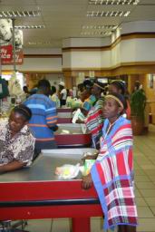 Das Abendessen wurde quasi vom Besitzer gekocht - der andauernd ankam und Tipps hatte wie man die Spagetti "richtig" kocht. OK Boss - er spendierte dann auch die Soße und den Käse also quasi alles. Die Soße hatte leichten "Gras" Geschmack - wer weis was er da zuvor alles reingerührt hatte. Wir verbrachten dann auch einen recht lustigen Abend auf der Terrasse - während der Besitzer drinnen kiffte... Eine Sache habe ich fast schon wieder vergessen: Die Autovermietung sagte uns das wir vor der Einreise nach Zimbabwe noch irgendwelche Permits brauchen. Diese zu bekommen setzte ein Faxgerät oder eine Filiale von Europcar voraus. Angeblich hat Europcar im Krüger Nationalpark ein kleines Büro in der Skukuza Service Station - so dachte ich es jedenfalls. Nach einigen rumsuchen stellte sich dann aber raus das das Büro nicht innerhalb des Parks war sondern in Nelspruit - mist! Dafür war es nun zu spät - eine weitere Filiale gab es auf unserer geplanten Route nach Zimbabwe nicht - also blieb nur noch das ganze mit einem Faxgerät zusenden zu lassen. Der Versuch bei der Parkadministration in Skukuza schlug fehl - keiner der Europcar Hotlines wusste was genau ich brauche und die Verantwortliche Mitarbeiterin ist nicht erreichbar - toll - mal sehen wie die Sache weitergeht dachte ich. 24.03.2005 Auf gings erneut in den Krüger Nationalpark. Zuvor aber erstmal Frühstück im SuperSpar von Hazyview gekauft. Irgendwie war überall in dem Ort Berammlung und Unmengen Farbige unterwegs. ![]()