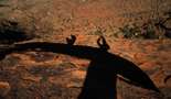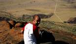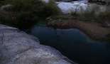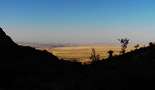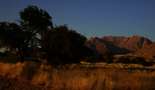 Rückweg: Wir nahmen nicht den gleichen beschwerlichen Weg über den Bergrücken zurück sondern ließen uns in ein Tal herrab in der Hoffnung das es sich am Bodem im ausgetrockneten Flussbett leichter laufen ließ. Der Abstieg war leider schwerer und gefährlicher als gedacht und nach 2h hatten wir den Boden des gewundenen Tals erreicht. Neben Affen und irgendwelchen Bergziegen begegneten wir keinen größeren Tieren - auch vor Schlangen und Skorpionen blieben wir verschont. Im sandigen Tal lief es sich tatsächlich entspannten - vor allem weil es nun bereits schattig und dämmrig wurde. Leider gab es ab und zu mehrere Meter tiefe trockene "Wasserfälle" die wir umständlich absteigen mussten. Teilweise gab es auch noch kleine Wasservorkommen mit unglaublich vielen Kaulquappen drin. Im letzten Dämmerlich erreichten wir 19 Uhr den Rand des Brandbergmassivs. Unsere Verpflegung war bis auf den letzten Tropfen verbraucht und es wurde kalt. Glücklich endlich die Tourtour hinter uns zu haben scherzten wir schon von den vielen kalten Bieren im Auto, der erfrischenden Dusche, frischen Klamotten und einen riesen Teller Spagetti. Doch zu früh gefreut....
