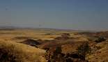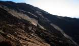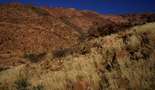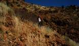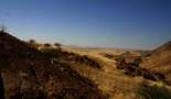 Die folgenden 3h - mitten in der Mittagshitze kletteren wir den Sattel einer Bergflanke ohne Wanderweg empor. Zuerst nur Schutthalde, verwandelte sich der Bergrücken immer mehr in harten Fels. Wir mussten inzwischen um jeden Meter kämpfen und ein Klimmzug folgte dem nächsten. Zwischen Dornengewächsen und Gestrüpp erreichten wir um 15:00 nach 5h harten Aufstieg ein Plateau wie auf einer Alm blos etwas trockener.