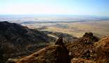 10Uhr wanderten wir los. Die ersten 2h verbrachten wir damit an einer Flanke einem Pfad folgend emporzukraxeln. Im klaren Morgenlicht wurde die Aussicht mit jedem Schritt besser und bald hatten wir eine Sichtweite geschätzen 50km über die umliegende Wüste.