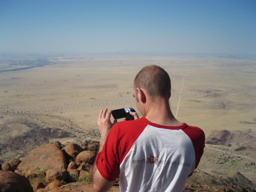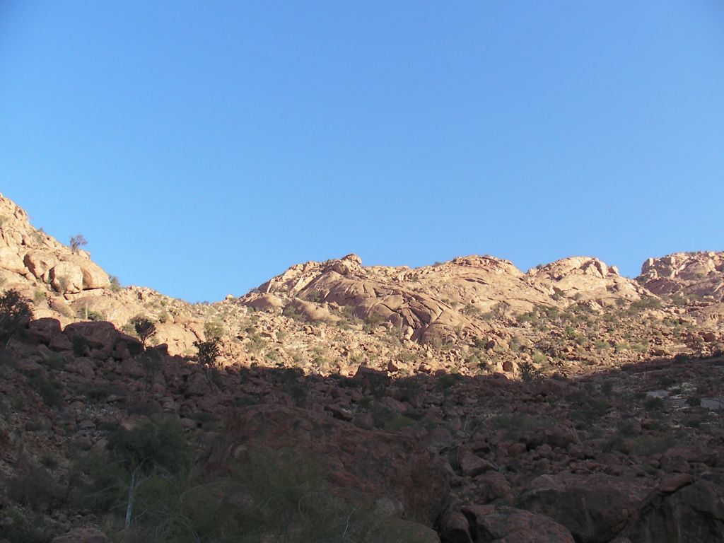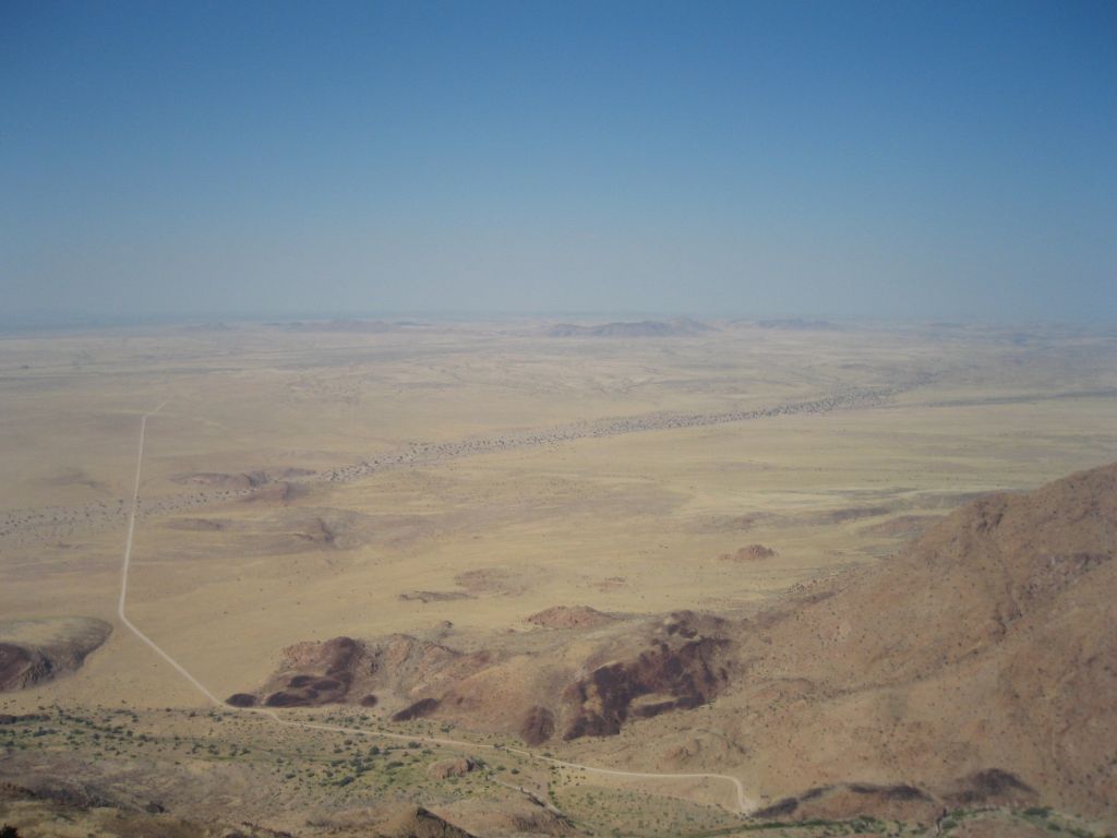 10Uhr wanderten wir los. Die ersten 2h verbrachten wir damit an einer Flanke einem Pfad folgend emporzukraxeln. Im klaren Morgenlicht wurde die Aussicht mit jedem Schritt besser und bald hatten wir eine Sichtweite geschätzen 50km über die umliegende Wüste.
