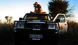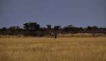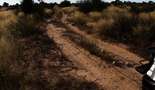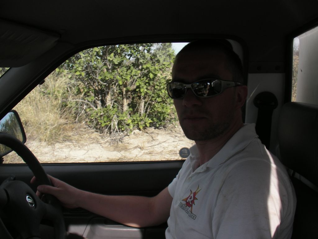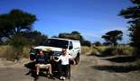 Wir fahren viele Stunden durch die Kalaharie und der Weg wurde immer beschwerlicher. Es waren kaum noch Reifenspuren ersichtlich. Und die vielen Dornenbüsche die rechts und Links das Auto zerkrazten, ließen vermuten das wir die ersten Besucher seit Wochen waren die diese Süd-Nord Strecke fuhren. Das Navi zeigte nichts mehr an und war nur noch als Kompas zu gebrauchen. Eine echte Karte mit den Tracks die es hier gab hatten wir leider auch nicht. Also hofften wir das es nur diese eine Strecke Richtung Norden zur Molapo Campsite gab. Eigentlich hätten wir heute Abend auf der Deception Pan Campsite übernachten sollen - aber das war illusorisch. Wir fuhren von 7 Uhr bis 15 Uhr abgesehen von einigen Fotostops die 8h durch. Alles im Low Gear mit blockierten Differential auf endlosen Sandlachen. Wir hatten so ca. 150km geschafft was einem durchschnitt von 20km/h entsprach. Unser Tank war weniger als Halbvoll was uns etwas irritierte aber anscheinend verbrauchten wir tatsächlich ca. 38 Liter Benzin auf 100km Offroadstrecke. Einmal als Marcus fuhr sahen wir Hyenäen oder Schakale oder wie auch immer diese häßlich aussehenden Viecher heißen direkt neben dem Auto im Sand liegen. Im letzten Moment erwischte ich diese noch mit der Kamera und spornte Marcus an "jetzt ja nicht Stecken bleiben". Marcus gabs sich alle Mühe unser "Schiff" im 2. LowGear auf Kurs zu halten doch plötzlich ging der Karre die Puste aus. Wir hatten uns eingegraben. Irgendwie war uns so kurz nach der Hyänen Sichtung sehr unwohl nun im hüfthohen Steppengras abzutauchen und unterm Auto rumzubuddeln. Aber es half nichts. Einer mit dem Bären-KO-Spray und einem Blanchier Messer (aus dem BBQ Set) stand wache und abwechselnd gruben wir mit dem Spaten die Hinterräder aus. Der Erste Versuch (das ist immer der für faule die nicht genug graben wollen) schlug fehl und beim 2. mal Graben und reichlich Feuerholz unterlegen schafften wir es die abgesckte Kiste freizubekommen. Jetzt ja nicht wieder anhalten und weiter gings. Abenteuerlicherweise hatten wir es geschaft uns zu verfahren und die Strecke und Richtung stimmte inzwischen definitv nicht mit der geplanten überein. Die Büsche prasselten nur so gegen die A-Säulen und die Antenne hatten wir längst eingefahren. Das ganze Auto hatte rechts und Links schwarze Schrammen. Bis wir endlich an einer Siedlung von Ureinwohnern ankamen. Diese Einheimischen leben hier 99% von der Umwelt abgeschlossen und wir dachten die Kalaharie ist unbesiedelt... Keine Straße, keine motorischen Vehicel, kein Strom kein Wasser, kein Telefon, Handy, Internet - nichts. Sie lebten hier in Lehmhütten als Viehhirten. Sie waren alle sehr neugierig und die Kinder kamen langsam näher. Also versuchten wir mit Händen und Füßen zu erklären das wir nach Molapo wollten (Englisch konnte niemand hier verstehen). Zum Glück war Molapo zwei jungen Frauen irgendwie geläufig und Sie zeigten in eine bestimmte Richtung. Da es hier von schmalen Pfaden nur so wimmelte baten wir Sie uns genauer zu zeigen wos langgeht. Inzwischen warn die einzigen Gastgeschenke (Zigaretten) die hier gern genommen wurden fast aufgebraucht und so erhielten die beiden Frauen die letzten Exemplare. Sie liefen dann Barfuß fast 15 Minuten im Dauerlauf vor unserem Auto her wir dachten schon die wollten die ganze Strecke nach Molapo mit uns laufen. Doch endlich blieben Sie stehen und tatsächlich war dort ein Schild mit der Aufschrift Molapo 76km. Nochmal eine runde Kippen aus der 2. Schachtel und ein OBI Feuerzeug und hoffentlich zünden Sie damit nicht den Busch an.
