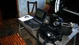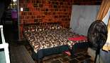 Fotosession - so ein bischen die Ausrüstung unseres Geländecampers fotografiert und Spritztour nach Zeerust - Souveniers kaufen und Burger essen. Und weils so langweilig war eine Showeinlage: Schmeissi bekommt die Tür zu seinem Schlafzimmer nicht mehr auf. Egal - Marcus soll helfen. Was macht der Kerl: Er wumst so gegen die Tür und Türklinke bis die Klinke abbricht. - Super. Uns bleibt nichts anderes übrig als zum Besitzer zu laufen und um Hilfe zu bitten. Was aber alles unproblematisch war. Abends Lagerfeuer hinterm Haus und mit dem Besitzer=Farmer gequatscht. Als Abschiedgeschenk vermachen wir ihm noch unsere überzähligen Biere und Essenvorräte.