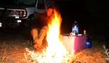 Übernachtet wurde auf einer stillgelegten Seitenstraße im Gestrüpp irgendwo vor Mabutsane im Dachzelt. Ein Lagerfeuer gegen die Kälte gabs auch.