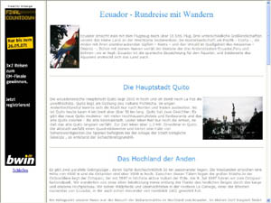 3 wöchige Rundreise durch Ecuador, Besuch der Hauptstadt Quito, Wanderung am Cotopaxi, Besuch der Indianermärkte, eine Woche im Regenwald am Rio Napo, abenteuerliche Eisenbahnfahrt über die Teufelsnase