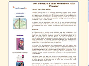 Die Reise beginnt in Caracas, führt dann zu den Angelfalls. Anschließend besuche ich eine Freundin in Cali, zum Schluss besuche ich Guayaqil, die Galapagos-Inseln und Quito in Ecuador