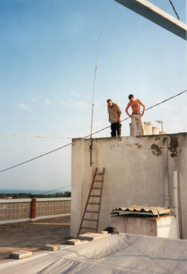 Das gemütliche Hotel bei Cartagena hatte auch ein begehbares Dach: Schmeissi und Marcus sind drauf.