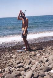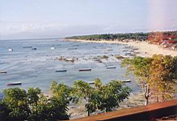 Bali - Tulamben bis Nusa Lembongan30.07.03In dem kleinen verschlafenen Dorf an der Küste namens Tulamben hielten wir schließlich hier war die Welt noch in Ordnung. Es gab 3 Bungalow Siedlungen und 2 - 3 kleine Gästehäuser, wenige Touristen und alles lief langsam und geordnet ab. Nach einem kurzen smalltalk im einzigen "Geschäft" des Dörfchens - wir suchten ein Telefon - empfahl uns ein Kunde im Geschäft sein Gästehaus. Er lud mich aufs Moped und zeigte mir alles. Für 70.000Rp/Zimmer hatten wir einen schönen Swimmingpool für uns allein in einem Nagelneuen Reihen-Bungalow. Ein echtes Schnäppchen - incl. Frühstück auf dem eigenen Balkon und wirklich schön eingerichtetem Zimmer (keine AirCon nur Fan). Hier entschieden wir uns bleiben wir mindestens 2 Nächte. Vom Bungalow aus waren es nur 1 Minute bis zum schwarzen steinigen Strand. An dem sonnten wir uns und ich ging schnorcheln (25.000Rp Schnorchelausrüstung/Person/Tag). Im Wasser gabs ein altes Schiffswrack mit vielen Fischen - und Tauchern. Diese zeigten einem aber zum Glück den Weg zum Schiff . Auch ohne Taucherausrüstung konnte ich von oben das Schiff gut sehen und alles was da so rum schwamm und wuchs - mir hat es Spass gemacht! Die Einheimischen Frauen dagegen habens nicht leicht - die müssen sich nämlich ihr Brot noch mit echter arbeit verdienen - sie schleppten die Taucherflaschen der Touristen über den steinigen Strand... Abends gings in eine der beiden Strandrestaurants des Örtchens - und leider gabs hier dann auch wieder prollige deutsche auf die sich lautstark über irgendwelche typisch deutschen Probleme unterhielten. Egal wir genossen den wunderschönen Abend und tranken einen über den Durst. 31.07.03 Frühstück auf dem Balkon dann Swimmingpool und anschließend schnorcheln, danach die abgerissenen Typen der Autovermietung angerufen das wir einen Tag länger brauchen. Ein bischen spazieren... und den bestiegenen Vulkan nochmal in ganzer Pracht fotografieren können.... Dann mal noch Internet in der Tauchschule nebenan gemacht - seit langem mal wieder, und einfach nur entspannt. Wieder Abendessen am Strand und danach mangelnds Rupien im Hotel Dollar getauscht zu einem ziemlich verdammt guten Kurs - ich weis nicht warum. 01.08.03 Heute gings wieder zurück Richtung Denpasar - bis zum Flughafen. Denn wir hatten neue Pläne. Per Email hatte ich erfahren das Tomomi (meine Urlaubsbekanntschaft aus Australien - siehe Australien - Tasmanien 2003 mit Schmeissi und Tomomi ) ein Ticket nach Singapore gebucht hatte. Das bedeutet dass ich mit Bernadette zwischen 6.8. und 10.08 in Singapore sein muss. Also erkundigten wir uns auf dem Flughafen Denpasars wie viel ein Flug nach Singapore kosten würde. Wir überlegten auch per Boot nach Singapore zur fahren - aber letztendlich fanden wir in den ca. 10 Verkaufskiosken am Flughafen nichts passendes (für meinen Geldbeutel). Wir klapperten dann noch die Büros der 5 Airlines rund um das Flughafengelände ab - aber wieder Fehlanzeige. Also zurück zum Strand von Sanur - ins dreckige Ananda Hotel (55.000Rp) eingecheckt. Danach weiter nach einer Lösung gesucht und schließlich in einem der riesigen Hotelklötze am Strand ("Hotel Sanur") von Sanur die Lösung gefunden. Im Erdgeschoss befanden sich einige Reisebüros unter anderem ein Büro der Quantas. Der Angestellte konnte zum Glück richtiges Englisch und bemühte sich uns zu helfen. Wir buchten schließlich einen Flug von Jakarta nach Singapore für 95US$. B. war so nett die Hälfte meines Tickets zu bezahlen - weil ich doch so arm war und sparen musste (normalerweise hätte ich die 3x billigere Fähre favorisiert). Der Quantas Typ gab uns dann noch den Tipp mit der billigen Buslinie von DenPasar nach Jakarta - welche wir sofort danach aufsuchten. Eine chaotische Fahrt zum zentralen Busterminal Platz in DenPasar und dann dort nach billigen Tickets nach Jakarta Ausschau gehalten. Innerhalb des Busterminals gab es einige Kioske für Bustickets und Fährtickets nach ganz Indonesien. Leider gabs die Schlepper und Bauernfänger wie bei unserer Ankunft hier immer noch. Ich lies mich nicht verwirren fragte in jedem Kiosk nach den Preisen und kaufte schließlich 2 Tickets nach Jakarta Eksekutiv (1.Klasse) mit Essen und AirCon für 230.000Rp/Person. Dann zurück zum Ananda Hotel unseren Mietwagen abholen lassen und zuvor noch mal voll tanken (1500Rp /Liter = 7 Cent/Liter :). Alles klappte Reibungslos. Nun hatten wir nur noch 2 Dinge zu tun. 1. überlegen was wir die nächsten 5 Tage machen wollten und 2. Bernadetts Rückflug nach Deutschland umbuchen - da sie ja nun nicht mehr in Jakarta abfliegen würde. Das erste ToDo war schnell erledigt wir wollten auf die Insel Nusa Lembongan welche knapp 20km vor der Küste Balis liegt. Dafür buchten wir eine Überfahrt direkt von der Küste Sanurs abgehend mit einem Fischerboot rüber auf die Insel (33.000Rp/Person). Für das 2. ToDo liefen wir vom Strand von Sanur bis ins Stadtzentrum von DenPasar - ca. 16 km hin und zurück. Unterwegs wurde es dann schon dämmrig und dunkel - dafür wars nicht mehr ganz so heiß. Trotzdem lief und der Schweiß in Strömen und der heftige Verkehr machte uns zu schaffen. Vorbei an Tempeln wo irgendetwas gefeiert wurde, vorbei an Parkanlagen wo die Leute grillten und mit Ihren Kinder spielten, vorbei an Fußballplätzen, Reisfeldern, Gärtnereien usw. Endlich erreichten wir das Büro der Lufthansa? und ließen das Ticket umbuchen. Wir waren ziemlich fertig als wir zurück kamen und nach einem kleinen Snack in einem der Strandbars Sanurs fielen wir hundemüde ins Bett. 02.08.03 Um 8 Uhr fuhr das Fischerboot nach Nusa Lembongan. Die Fahrt dauerte ca. 3h. Wir hatten ordentlich Wind, die Wellen waren ziemlich hoch und alle im Boot wurden ordentlich Nass. Rund ein Dutzend Touristen waren mit an Bord Japaner und Australier - welche zum Surfen gekommen waren - den die Küste Lembongans eignetet sich anscheinend dafür. Ich unterhielt mich mit einem auf dem Dach 