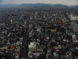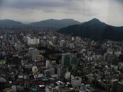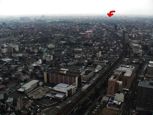 Heute bin ich mal mit BuChan eine Station in die 4km entfernte Stadt Gifu gefahren und hab vom 43. Stock ein paar Fotos gemacht. Da wo der Rote Pfeil ist wohnen wir.
