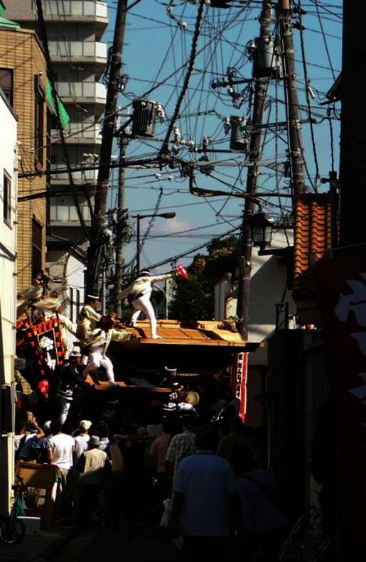 Das heutige Ziel bestand darin das Danjiri Festival in Kishiwada City bei Osaka zu besuchen. Daher früh aufstehen und um 7:00 ab in den Bus. Das die (Kaffee)fahrt 6 Stunden hin und ebensolange zurück beträgt wurde mir von meiner Begleitung erst mitgeteilt als ich gegen 9 Uhr langsam rumnörgelte wann wir endlich da sind. Nunja es gab für jeden Gast im Bus ein kleines Lunchpaket und es wurde jede Stunde eine Pause eingelegt meist an Rastlplätzen mit angeschlossenem Geschenkeeinkaufskomplex. Bisweilen wurden auch proben der erwerbbaren Backwaren, Fische, Snacks im Bus vor dem Aussteigen verteilt – damit wir auch ja nicht vergessen passende Mitbringsel zu erwerben. Endlich nach Stau um 14:00 in Kishiwada angekommen, gings auch schon los. Die Stadt komplett abgesperrt und Menschenmassen ohne Ende. Und die ersten Teams zogen bereits die hölzernen Schreine an hundert Meter langen Seilen durch die Straßen und schmalen Gassen.