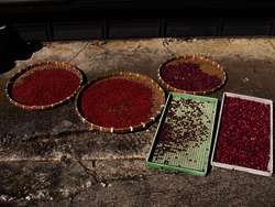 Wie man auf einigen Bildern entlang der Wege sehe - werden hier Süßkartoffeln, Bohnen, Sesam und mehr oder weniger tote Insekten getrocknet.