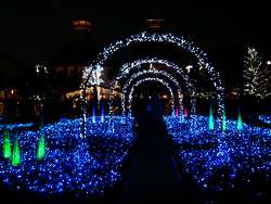Doch als es dunkel wurde erkannt ich, das nicht die Blumen die Attraktion sein sollten – sondern die extravagante exzessive Beleuchtung. Es war schon überwältigend. Der gesamte Park war mit Teppichen aus Lampen zugepflastert die wogend die Farben wechseln konnten.
