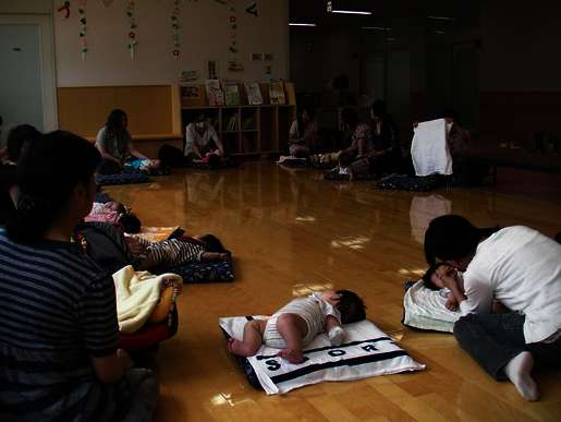 Hauptsächlich ging es darum zu kontrollieren ob das Baby gesund ist – ich glaube aber auch das dies eine typische Arbeitsbeschaffungsmaßnahme ist - denn auf die ca. 20 Kursteilnehmerinnen kamen mindestens 20 Angestellte der Gemeinde die irgendwie eine Kleinigkeit zur Daseinsberechtigung ausführten. Am Besten fand ich die Live Vorführung mit Verkostung von allerlei Speisen die man für das Baby kochen lernen sollte. Ich verstand natürlich nichts. Als ich nach 2h relativ erschöpft genau wie BuChan mich auf einem Kissen am Boden lang machte gab´s Schelte. Ich solle das doch bitte unterlassen – natürlich alles indirekt kommuniziert aber ich habs trotzdem verstanden – und ignoriert ;).