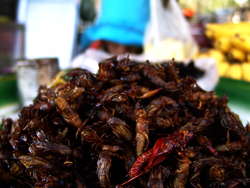Frittierte Vogelspinnen, Käfer und Heuschrecken kann man am Straßenrand ebenso bekommen wie Mangos mit scharfer Salzpaste, gegarte Schildkröten, gedünstete Maiskolben, gebackene Vogelembryonen oder halbgekochte Vogeleier. Scharenweise drängen die Verkäufer in den Bus, sobald man anhält. Sie bieten Ananas, geröstete Bohnen, Baguettes mit Huhnfüllung und frittierten Fisch am Spieß an. Wer Süßspeisen präferiert, wird mit dem Waffel- und Kuchenangebot sehr glücklich werden. Zu empfehlen sind auch kandierte Süßkartoffeln, Reis mit Rosinen eingelegt in Blättern, frittierte Bananen und Teigwaren mit Kondensmilch. Eine richtige Abart dagegen sind die Stände mit Analog-Wurst, man bekommt dort frittierte Fleischimitate, die nach nichts schmecken.