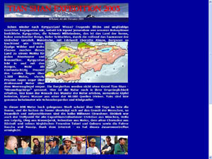 Besuchte Sehenswürdigkeiten / Keywörter: Kyrgyzstan lebt in und mit den Bergen. Kyrgyzstan, Kirgisistan, Kirgisien, Kirgise, Kirgisen, Reisebericht, Expedition, Tien Shan, Tian Shan, Zentralasien, Mittelasien, Cherusker, alter Cherusker, Bischkek, Bishkek, Osch Basar, Maglan, Schaschlik, Schorpo, Kara Balta, Suusamyr, Kumys, Stutenmilch, Toktogul-Stausee, Naryn, Arslanbob, königliche Wälder, Baubash-Ata, Alexander der Große, Jalal-Abad, Kazarman, Kok Art, Kosch Kelenisder, Akkyya-Pass, Song-Kul, Özbek-Tal, Besch Bar Mak, Beschbarmak, Yak, Tölök-Tal, Balykschy, Issyk-Kul, warmer See, Bar-Bulak, Thermalquellen, Bir ur tam, Dzhety Oguz, Karakol, Tian Shan Fichten, Altyn Arashan, Mineralquelle, Radonquelle, Palatka, Djilisu, Przhevalsky, Nikolai Przhevalsky, dunganische Moschee, Ars Lan Fu, Cholpon Ata, Burana, Burana Turm, Jussup Balassaguni, Boom-Schlucht, Kutagdu Bilik, Gonalik, Issyk-Ata, Ak-Kalpaks, Jakschy Kal