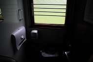 Nach einer relativ gut geschlafenen Nacht genießen wir bei Sonnenschein unser Frühstück. Es gibt frisches Weißbrot, Käse, Wurst, Obst und Gemüse. Danach probieren wir sogleich im Zug-WC unsere innovative Duschkonstruktion aus. Man fülle dazu zunächst eine Flasche (Marcus mag lieber zwei) mit Wasser. Dazu muss am Wasserhahn ein Knopf nach oben gedrückt werden. Die Flasche wird dabei ggf. geknickt. Anschließend einfach über den Körper langsam etwas Wasser kippen, knapp einseifen und das restliche Wasser zum Abspülen der Seife nutzen. Füße und Beine können auch direkt unter dem Wasserhahn gesäubert werden. Wenn das sich im Boden befindliche Abflussloch zu ist (manchmal presst das Personal da ein Handtuchknäuel rein), veranstaltet man damit, zum Ärger des Zugpersonals, jedes Mal eine kleine Überschwemmung. Es ist daher besser das Hindernis mit einer Folie über der Hand zu entfernen.