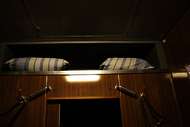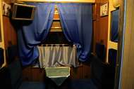 Nach einem kurzen und unfreundlichen Check Out im Hotel ohne Abschiedsworte seitens des Hotelpersonals, begeben wir uns vollbepackt auf den Weg zum Kasaner Bahnhof. Wie sehr sind wir erleichtert, als wir sofort unseren Zug an der Anzeigentafel finden (13.10 Uhr Moskau-Ulan Ude Zugnummer 82). Noch mal gestärkt mit dem bekannten Frühstück im gleichen Bahnhofscafe wie gestern, begeben wir uns eine gute halbe Stunde vor Abfahrt zum dem Abfahrtsgleis (Gleis 1). Am Zugwagon werden wir sogleich von unseren jungen und vor allem freundlichen Zugbegleitern (ein Mann und eine Frau, ca. zwanzig Jahre jung) in Empfang genommen und persönlich zu unserem Abteil (VI) geführt. Auf wundersame Weise verschafft uns der bloße Ausdruck einer Email Zugang zu unserem Lebenstraum. Wir sind erstaunt über den Komfort und die Größe unseres Abteils. In vielen Reiseführern steht beschrieben, dass der Unterschied zwischen der ersten und zweiten Klasse lediglich aus der unterschiedlichen Bettenanzahl (erste Klasse zwei Betten, zweite Klasse vier) besteht. Doch weit gefehlt! Unser Abteil beinhaltet einen Flachbildschirm für DVDs, eine Klimaanlage, zwei Spiegel und verschiedene historische Bilder von russischen Bahnhöfen an den Wänden. Sowohl Betten als auch Wände waren mit edlen Stoffen bezogen. Einfach schön und romantisch!