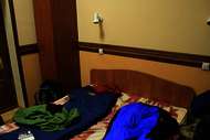 Nachdem wir pünktlich um 3.00 Uhr in Irkutsk ankommen, begeben wir uns sogleich auf die Suche nach den extra eingerichteten Schlafräumen des Bahnhofes. Diese heißen “komnata otdykha” und kosten ein paar Euro pro Stunde und bieten sogar eine Gemeinschaftsdusche. Ärgerlicherweise wird gerade der letzte zur Verfügung stehende Raum an zwei Amerikaner vor uns vermietet. Daher müssen wir für die kommende 90 Minuten mit einem Sitzsofa des Warteraumes, der sehr einem Saal eines Barockschlosses ähnelt, vorlieb nehmen. Dieser Bereich ist für etwas betuchtere Wartegäste (kostet ein paar Rubel) geöffnet und nicht mit dem allgemeinen Wartesaal (dort will man aber nicht nachts rumlungern) zu verwechseln. Umgeben von schnarchenden Mitstreitern und einem doch relativ laut eingestellten Fernseher gelingt uns trotz großer Müdigkeit das ersehnte Einschlafen nicht. Daher freuen wir uns auf das Bett, welches uns von 4.30-10.00 Uhr zur Verfügung steht. Das Zimmer ist schlicht, einfach und gut genug für ein paar Stunden Schlaf.
