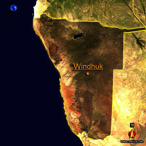 Auf der interaktiven Namibia - Karte kannst du schonmal die schönsten Ziele aus der Luft erkunden, bevor du später selber hinreist. Weiterhin kannst Du die bevökerungsreichsten Städte, die höchsten Berge und Vulkane (falls vorhanden :) oder die bekanntesten Wüsten in der Karte anzeigen lassen. Wähle dazu oberhalb der Karte das entsprechende Symbol. Mit den Pfeilen oder mit der Maus kannst du dich auf der Karte bewegen, mit dem Zoom (oder Doppelklick auf eine bestimmte Stelle der Karte) kannst du den Ausschnitt vergrössern oder verkleinern. (Dafür muss JavaScript im Browser aktiviert sein!).