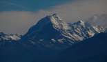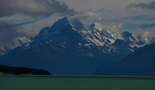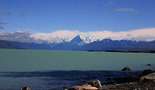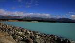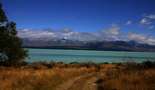 Nachts und Morgens hats geregnet – keine Gute Vorraussetzung für eine gute Sicht auf den höchsten Berg Neuseelands - den Mount Cook mit 3754m Höhe. Doch zum Glück klarte während der Fahrt zum Mt. Cook Viewpoint der Himmel auf. Daher reichlich Fotos gemacht. Die Landschaft war herrlich hier. Endlose Ebenen und weite freie Sicht auf die schneebedeckten Berge. Eine Besteigung oder Übernachtung hier hatten wir nicht vor als gings weiter die Route #8 zum Lake Tekapo.