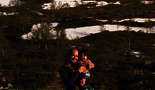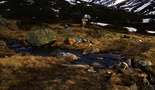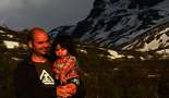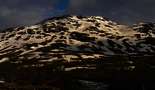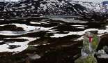Gegen 10 Uhr machten auch wir dann los. Wir wollten aber nicht sofort zurück zum Auto - sondern erstmal einige Stunden das Hinterland hier erkunden. Also schleppte ich größtenteil den gut eingemummelten BuChan über verschiedene Bergrücken - bis mein Rücken keine Lust mehr hatte. Hier oben direkt in der Hardangervidda lag um diese Zeit eine fast geschlossene Schneedecke. Noch 100 Höhenmeter mehr und man hätte Ski oder Schneeschuhe gebraucht...