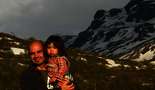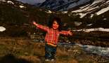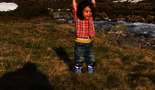 Zu allen Seiten gabs beeindruckendes Panorama. Ein blauer reißender Bach, Schneebedeckte Berggipfel und der endlose See. Perfekt für einen Spaziergang bei inzwischen blauem Himmel und Sonne. Wie immer wollte BuChan mit dem Schnee der noch rumlag spielen :).