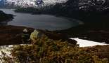 Wir standen auf als die anderen Wanderer bereits fast wieder abmarschiert waren. Wie sich rausstellte waren es Tourguides die zu viert zwei oder noch mehr Paddelboote nach oben transportierten zu irgend einem See von dem aus sie dann in 14 Tagen mit einer Touristengruppe zum paddeln über eine längere Strecke aufbrechen wollten. Eigentlich eine super Idee - die vielen Seen hier mit dem Paddelboot zu erkunden. Man müsste sich blos mal eine Kette zusammenhängender Seen rausgucken und genug Lust mitbringen das Boot auch hier hoch zu schleppen. Naja vielleicht in den nächsten Jahren mal...
