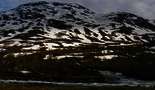 Die schottrige Piste die wir ab verlassen der E134 entlang des Valldalsvatnet - See fuhren war endlos und anstrengend - vor allem weil das Gebiet neu war und wir nicht wussten ob sich die Strecke wirklich lohnt oder am Ende einfach ein Dorf kommt oder ein Steinbruch etc... Vereinzelt war der Weg nur 2,5m breit vom Schnee geräumt bzw. hatte enge Gassen durch den Schnee - an wenden oder ausweichen nicht zu denken.