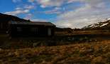 Kurz nach 17 Uhr hatten wir nun wieder alles zusammengepackt und wandertem bei bestem Wetter die paar Kilometer auf der Piste / Weg zur Middalsbu Hütte. Die Strecke war vielleicht 2,5km lang immer sanft bergauf und nur an wenigen Stellen vereist oder verschneit. Um 18:15 waren wir dann an den beiden Hütten angekommen. Und Shit! Beide Hütten warn verschlossen. Also musste ich wieder den DNT Schlüssel benutzen den ich noch nicht hatte - und das dauerte dann erstmal 15 Minuten ehe die Tür auf war.