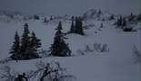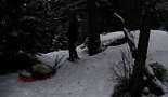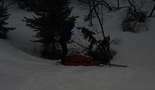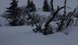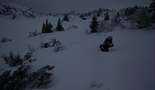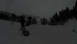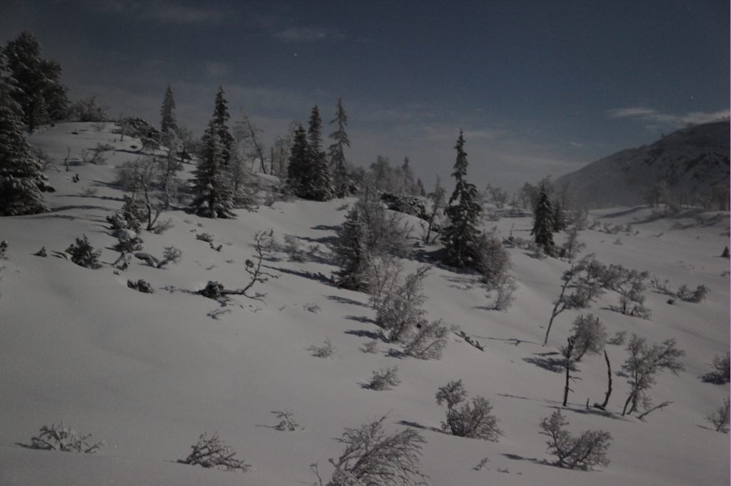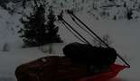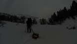 Die erste Strecke ca. 2km von der Nutevasshytta Richtung Ganbustoyl führte leicht baumbewachsen abwärts - sehr gemächlich und mit viel Schnee. Zum Ende dieser 2km wurde es das erste Mal wieder komplizierter - ein nicht richtig gefrorenen Fluss entlang - der Weg durch viele Bäume nicht wirklich frei wählbar und allseits geneigten Flächen - mehrmals mussten wir die Schlitten abschnallen und per Hand zu zweit zu dritt irgendwo rausziehen oder vorsichtig abseilen. Einmal scouten inbegriffen weils eigentlich irrsinnig war die Strecke mit Schlitten bewältigen zu wollen - aber dann hatten wir es geschafft.