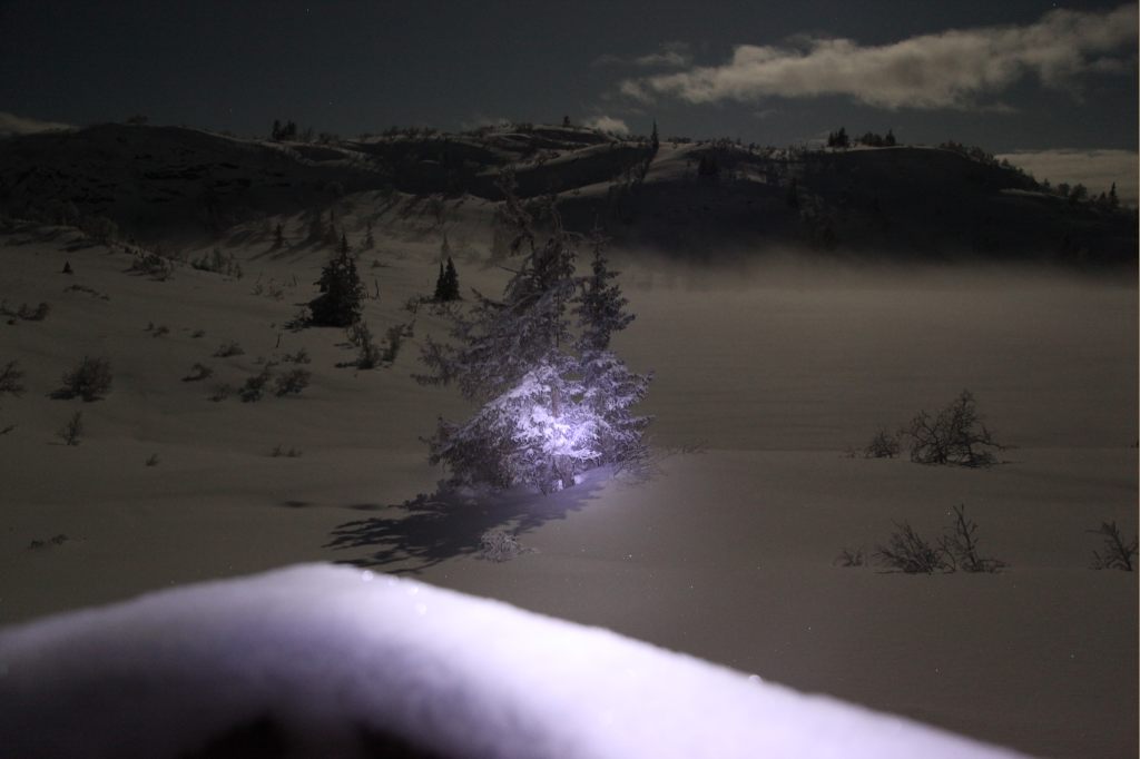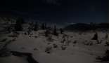 So gegen 3:00 entschied ich mich nicht nur das nötigste draußen zu machen sondern nochmal die "gute" Canon 5D mit rauszunehmen und mit Stativ einige Langzeitbelichtungen zu machen. Der Mond schien und es war Sternenklarer Himmel. Eisiger Wind aber dennoch eine Ruhe und Landschaft wie man sie selten erlebt. Nur 2-3 Sekunden Belichtung reichten aus um Nachts einen blauen Himmel zu zaubern als wäre es Tag. Einzigstes Problem war das schaft stellen - das schaffte die Kamera im dunklen nicht von alleine - als mit der Lampe vorgeleuchtet - fokusiert - Lampe aus und Feuer frei. Beim nächsten mal ziehe ich mir auf jeden fall wärmere Klamotten an und bringe ne bessere Lampe mit zum Ausleuchten :).