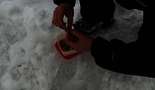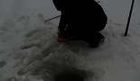 Doch zuerst musste ein Loch ins Eis her. Gar nicht so einfach wie es sich anhört. Denn nach jeweils einigen Zentimetern mit der Axt fließt plötzlich Wasser ins Loch aber das Schichtenartige Eis war noch lange nicht durch. Mit dem 1,3m langen Stemmeisen wurde dann Schrittweise das Loch gemeißelt und nach jeder Eisschicht kan die nächste. Nach ca. 1m Tiefe waren wir endlich durch - und sahen Schwarz. Als das Loch endlich groß genug für einen Fisch den wir zu fangen dachten war - hielten wir endlich die Angel rein.