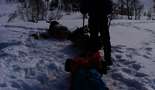 Das erste Drittel war dann auch schnell geschafft - dem Goldi mussten wir ab und zu helfen mit seinem Schlitten - es ging ja almählich wieder durch Unterholz und bewaldetet Flächen.