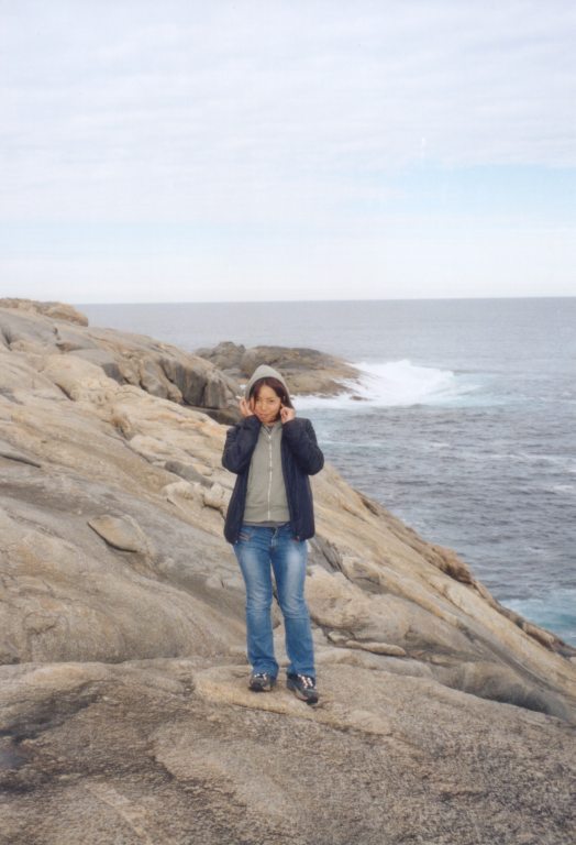 | Australien - ein Blowhole an der Küste - Tomomi hält sich die Ohren zu... | |