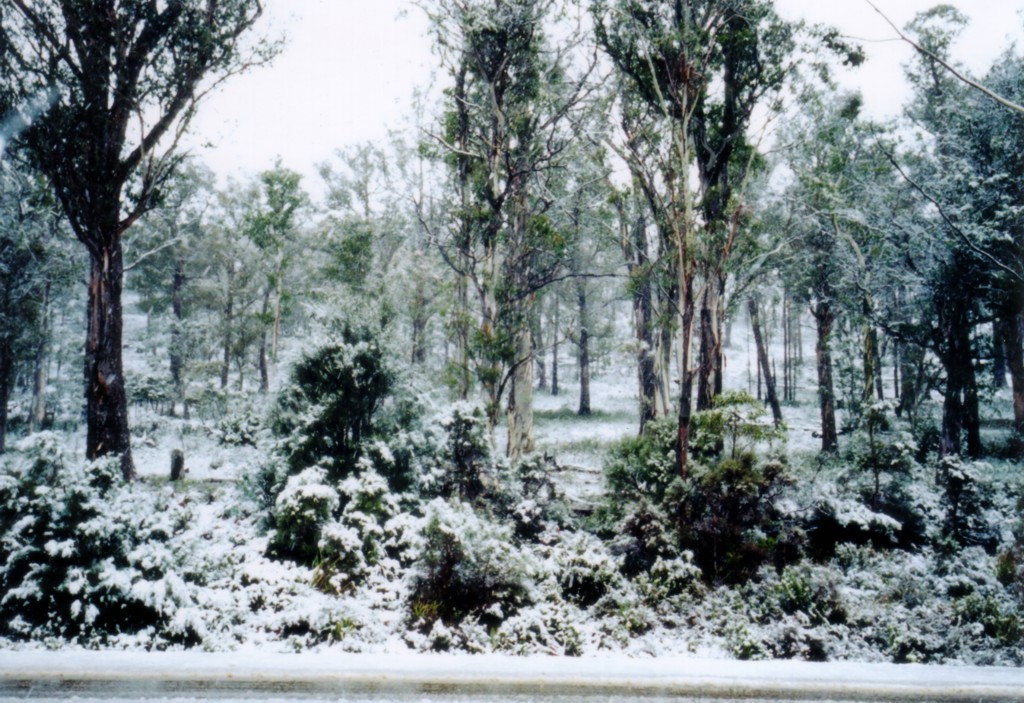 | Winter in Tasmanien 2003 Schmeissi und Tomomi im Schnee | |