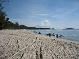 Gegend um Ko Samui 2003 - also zwei Jahre zuvor mehrere Monate bereiste. So schauten wir uns im Laufe des Vormittags die am Strand gelegene Hütten an. Die Auswahl reichte von einfachen Holzhütten für 100B bis zu größeren Hotelanlagen mit großem Pool für weit über 2500B. Aber irgendwie war alles nur „ok“ und nicht wie im Paradies. Das kam vielleicht auch daher, dass Koh Samui nicht mehr die Backpackerinsel von früher ist. Viele Baustellen, viel Beton und mindestens täglich 10 Flugzeuge mit neuen Touristen aus Bangkok. So fuhren wir weiter Richtung Südspitze der Insel.