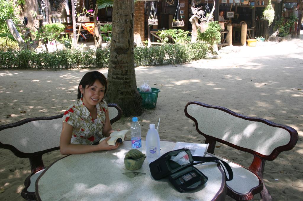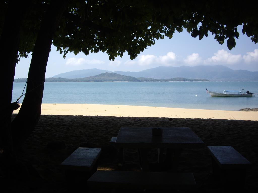 Die ca. 30 Minuten fahrt mit dem Longtailboot kostete 150 Bath / Person. Anlanden wie Robinson Crusoe - bloß das es auch noch andere Leute auf die Insel verschlagen hatte. Mit dem Manager geredet - er freute sich sichtlich daß wir nicht nur hier Mittag essen wollten sondern auch mindestens eine Nacht schlafen wollten. Für die runtergekommene Hütte knöpfte er uns 400 Bath ab - Monopol halt. Aber wir wollten ja nicht in der Hütte unsere Zeit verbingen sondern am Stand.