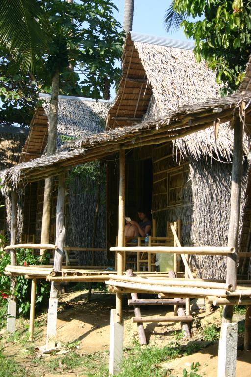 Hier mussten wir erfahren das es täglich nur ein Boot nach Koh Jum = Ko Pu gibt und zwar 8:00 morgens. Wir mussten also einen weiteren Tag auf Koh Lanta bleiben - und dass wo es doch hier nur teure Hüttchen gibt. Die Frau am Hafen war sehr hilfsbereit und nett und konnte sehr gut englisch. Sie telefonierte ein bisschen rum und meinte am Lanta River Sand Bungalow ist was günstiges frei. 20 Minuten später fanden wir den versteckten Hinweis auf die Bungalowsiedlung und dort für 500 Bath in eine komplett aus Bambus gefertigte Hütte eingezogen.