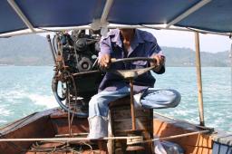 Das Essen war lecker und auch preiswert - abends gab es überraschenderweise keine Moskitos. Ein Schwätzchen mit dem Manager offenbarte die Problemchen der Insel - es gab kein Süßwasser aus der Erde - alles Wasser musste während der Regenzeit aufgefangen werden und wurde in mehreren Wassertanks gespeichert zusammen ca. 300.000 Liter. Pro Tag je nach Auslastung wurden 500-1500 Liter Wasser von den Touristen verbraucht und musste gelegentlich rationiert werden. Der eigentliche Eigentümer war stickreich - einige Details ließen mich mächtig staunen. Z.B: gehörte ihm auch die Nachbarinsel Ko Po? welcher er für 60 Mio Bath gekauft hatte und einige Jahre später für 150 Mio Bath wieder verkaufte. Von derartigen Deals wusste der Manager einiges zu berichten - und das machte ihn sichtlich unzufrieden - leider. Ob es alles stimmt weis ich natürlich nicht… Strom gab es abends vom Generator bis 23 Uhr danach mit der Stirnlampe "The Revenge of Gaia" von James Lovelock endlich fertig gelesen. Total verpeiltes Buch ist angeblich Bestseller ich fand es ätzend monoton und war froh das ich es weg hatte. Immerhin habe ich es ja für 450 Bath gekauft… - ich tauschte es am nächsten Tag gegen "Grenzfort Maritza " von C.H. Guenter. 13.01.2008: Herrlich frischer Morgen - alles schlief noch und stille. Wir schauten die Gästebücher die bis 1991 zurückreichten durch und machten auch unseren Spruch dazu - ebenso Werbung für Ko Tan - eine andere Insel die ähnlich dieser war. Wie vermutet war diese Insel sehr beliebt bei Schweizer Gästen - fast alle anwesenden Gäste kamen aus der Schweiz meist Familien mit Kindern (perfekte kinderfreundliche Insel!!!). Im Gästebuch waren dann auch 50% der Einträge von Schweizern - Geheimtipp sozusagen. Eine Stammgastfamilie hatte dann auch ihr Kind BuBu genannt - warum wohl??? Uns war dann gegen 10:00 klar das es uns hier zuviel Trubel ist und wir nahmen uns vor auf die nächste Insel weiterzureisen. Wir entschieden uns für Koh Jum auch Ko Pu genannt. Laut dem Chef ging eine Fähre von Koh Lanta - in Saladan morgens 8:00 und gegen 14:00 (Fehlinformation!). Also Abschied nehmen und erstmal zurück nach Koh Lanta (jeweils wieder 150 Bath/Person).