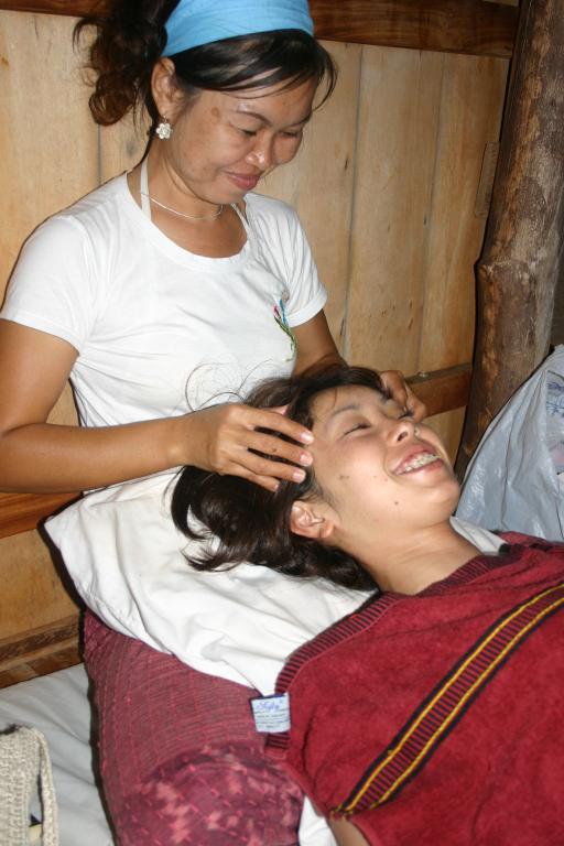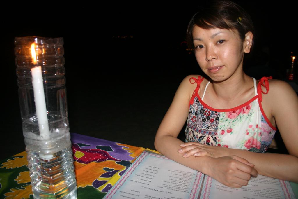 Leider war das letzte Zimmer auch weg - daher tranken wir erstmal ein kaltes Bier auf unsere Verzweiflung. Plötzlich rief die Angestellte - jemand habe abgesagt und wir können nun doch in das Knastzimmer bekommen - wunderbar. Tomomi gönnte sich nun erstmal eine Fuß-Massage am Strand (350 Bath für 1h) - für mich war es danach aber schon zu dunkel - wegen der vielen Mücken die dann immer kommen.