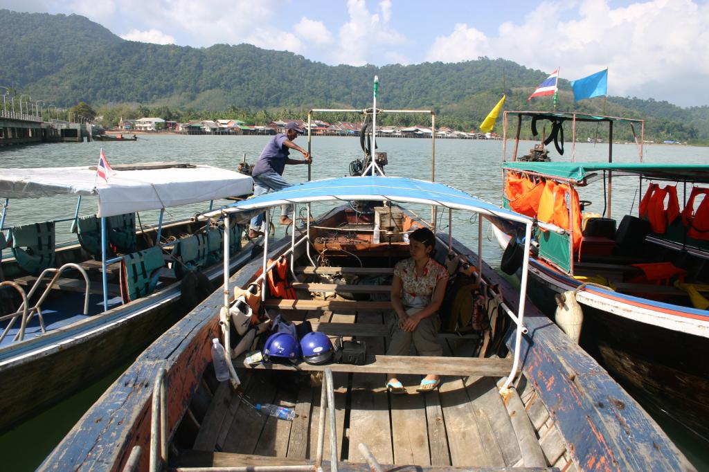 Wir hatten uns vorgenommen heute die "sagenumwobene" Insel Koh Bubu zu finden und zu besuchen wenn möglich. Vor gut einem Jahr hatte mich im Rastlos Gästebuch Sven darauf aufmerksam gemacht. Vorbei an Khlong Hin Village und ca. 10km später einen Abzweig ins Inselinnere genommen - Richtung Khlong Nin Village und den ausgeschilderten Höhlen "Mai Kaeo Cave" nach. Dann zum Viewpoint - und Je Lee Village. Wir erreichten dann am frühen Mittag die Ostküste Koh Lantas. Nun immer die Küste entlang wieder Richtung Süden - nach Lanta Town. Dort dann am Lanta Pier angekommen waren wir erleichtert das unsere Vermutung stimmte - das man hier tatsächlich nach Ko Bu Bu übersetzen konnte. Also kurz verhandelt um den echten Preis für die Überfahrt zu erfahren und dort anrufen lassen ob auch ein Hüttchen noch frei ist (Auf der Insel war Handyempfang möglich! 075618066). Die Mopeds ließen wir einfach vorne auf dem Pier stehen und los gings.