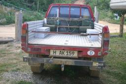 Krabi nach Koh Lanta YaiDass wir bei Ankunft auf dem Festland noch fast eine Stunde von Krabi entfernt sind wussten wir nicht. Hatten ja auch keinen Reiseführer gelesen :). Also kurz nach Ankunft am "Tha Lane Pier" flugs auf einen wartenden Laster aufgesprungen wo die Thailänder der Fähre hinmarschierten. Kurz gefragt obs nach Karbi geht und Preis erfragt 70 Bath für Thailänder.