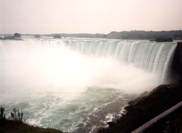 Niagara Falls, Kanada / USASamstag, 19.September 1998: Geschlafen hab ich im Zug bestenfalls zwei Stunden. In NYC musste ich den dann wechseln, um 7:00 war ich unterwegs nach Kanada. Der Zug war zwar reichlich voll, aber ich hatte trotzdem zwei Sitzplätze für mich und konnte mich lang machen. Für Niagara Falls hatte ich mir mal zwei Tage eingeplant, mein Zwei-Wochen-Railspass wollte ich bis zum Maximum ausschöpfen. Die Grenzkontrolle nach Kanada war ein wenig umfassender, als man so was für möglich hält. Mit einem halben dutzend Zöllner und Hunden sind sie kreuz und quer durch den Zug, dabei ging’s doch bloß nach Kanada... Kaum hatte ich, dort angekommen, den Zug verlassen, fühlte sich alles erstaunlich entspannt an. Ein recht unbestimmbares Gefühl lag in der Luft, das mir vermittelte, in Kanada ist alles ein bisschen normaler, freundlicher, als hinter der Grenze. (gesamt C$ 37: C$5 Essen, C$32 Hostel und -kram) Sonntag, 20.September 1998: Der Belgier auf’m Zimmer war ne verpeilte Pappnase, deshalb bin ich allein los, zu den Fällen. Voll mit Touris war’s, aber trotzdem genial. Eine Tour unter/hinter die Fälle hab ich mir auch noch gegönnt. Da wurde man in gelbe Regentüten gesteckt und konnte durch Tunnel hinter den Fällen vorschauen. Beeindruckend war’s auf jeden Fall. Abends ging’s dann ein bisschen durch die Stadt. (gesamt C$ 48: C$21,08 Hostel, C$8 Einkauf, C$6 Fälletour, C$7 Wendy’s - gibt’s hier auch, C$4 Snacks, C$2 Telefon)
