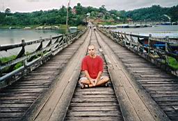 Affen zogen uns an den Klamotten und Haaren. Gegen 17:00 zurück nach Kanchanaburi gefahren und das Moped abgeben wollen. Der Besitzer war dann ganz aus dem Häuschen - er hatte inzwischen Anzeige bei der Polizei erstattet weil er dachte wir sind mit dem Moped abgehauen. Er hatte also nicht kapiert das wir das Moped für mehrere Tage mieten wollten - naja er war trotzdem glücklich und brachte uns noch zum letzten Bus der von Kanchanaburi nach Bangkok fuhr. Vom Busterminal in Bangkok dann zu Fuß ungefähr Richtung Khao San Road gelaufen. Als wir endlich einen Bus sahen mit einer uns bekannten Nummer (911) stiegen wir ein und landeten schließlich am uns bekannten World Trade Center WTC. Von dort fanden wir uns dann schnell zurecht und checkten schließlich wieder im Sidhi Guesthouse ein (200Bath Zimmer 311 :)). Tot müde fielen wir um Mitternacht ins Bett.