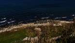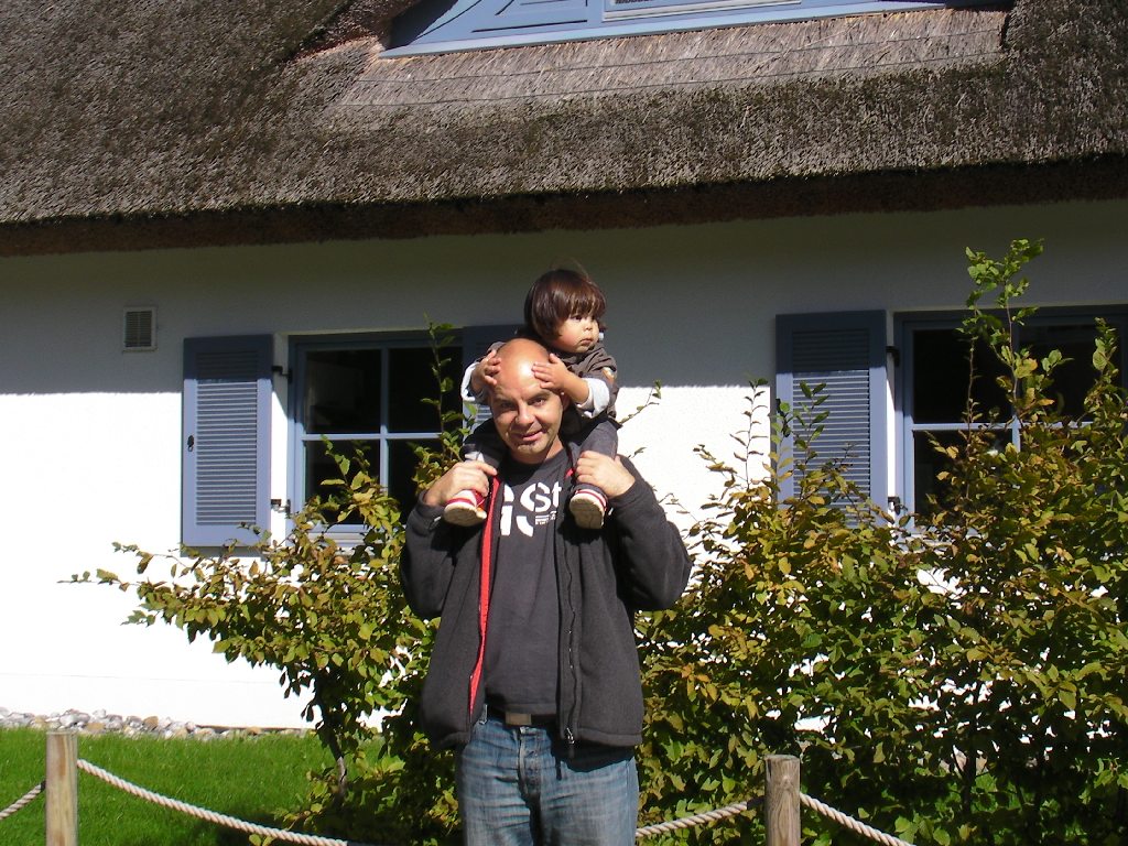Dort angekommen - einem der touristischsten Punkte auf Rügen erwartet uns als "Busfahrer" der Busparkplatz mit einer Parkgebühr ich glaub 8 Euro - dafür hätte man dort aber auch im Wohnmopbil übernachten dürfen. Vom Parkplatz konnte man mit der Kap-Arkona-Bahn bis zum Kap fahren - wir bevorzugten es alles erstmal zu Fuß zu erkunden. Wirklich nett Touristisch aufgemacht hübsche Reet gedeckte Häuschen, Impisstuben, Freisitze, Trödelläden und ein kleiner Marktplatz. Gegen Mittag hatten wir uns bis zum eigentlichen Kap Arkona vorgekämpft. Eine Militärbunkerlanlage und zwei Leuchttürme sowie die Steilküste erwarteten uns. Wir kraxelten mit Kinderwagen den Weg die Steilküste hinab und wieder hinauf. Den Bunker und den Leutturm ersparten wir uns zugunsten einer Mittagspause in einem der Freisitze mit Bier und Fischbrötchen.